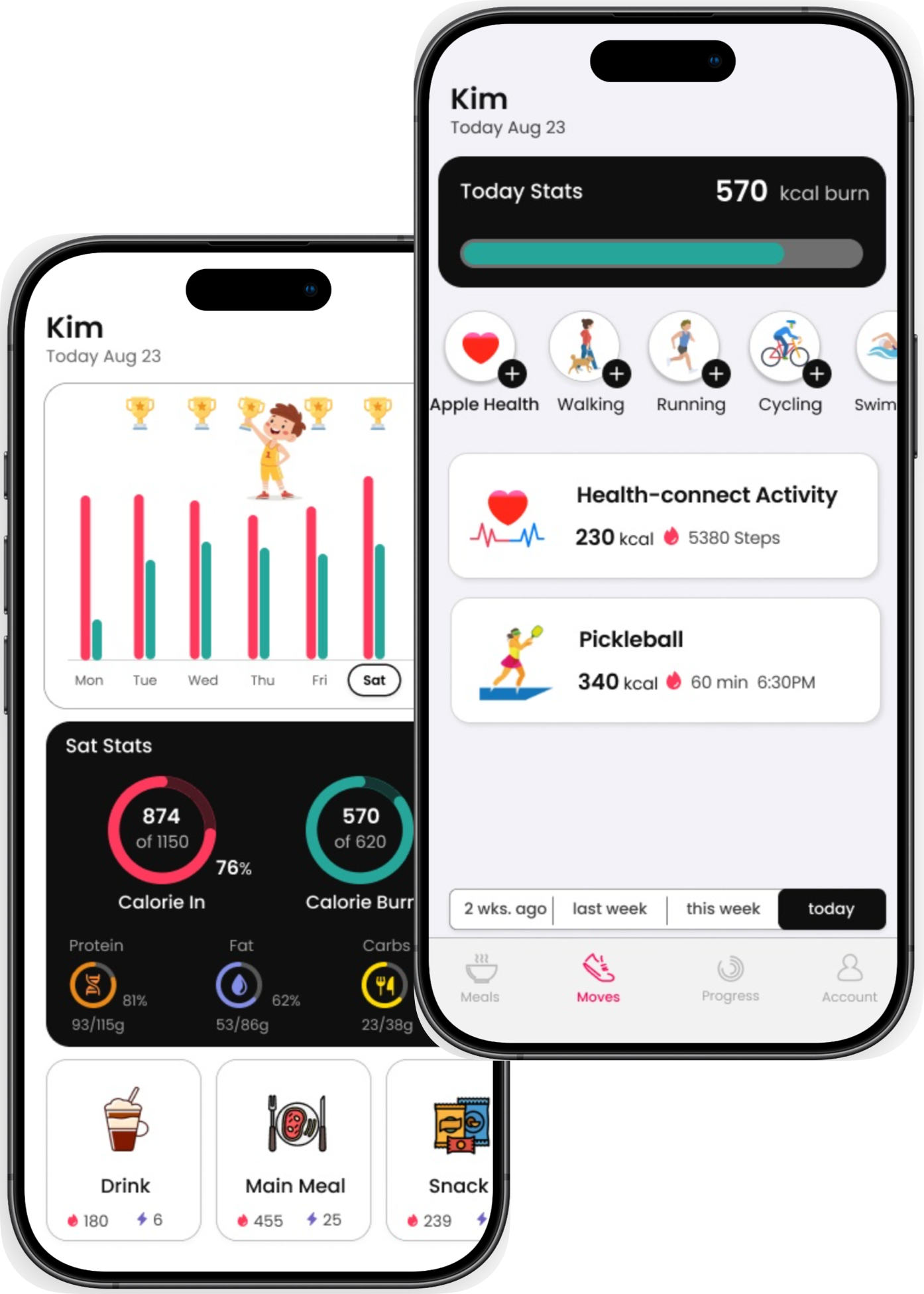 Activity: Your movement matters. Apple Health and Android Health Connect integration means every step and workout automatically counts toward your health picture.